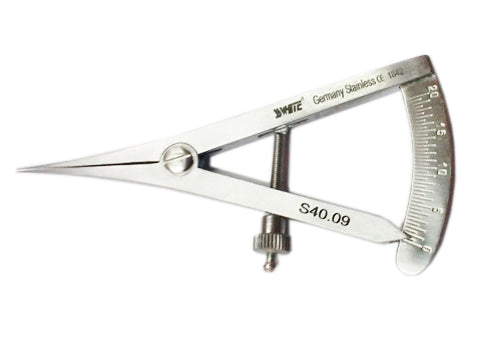 The Castroveijo Caliper 20mm (9cm) is a precision measuring instrument widely used in dental, surgical, and ophthalmic procedures. Made from high-quality stainless steel with a SS WHITE finish, it offers exceptional durability, corrosion resistance, and accuracy.
