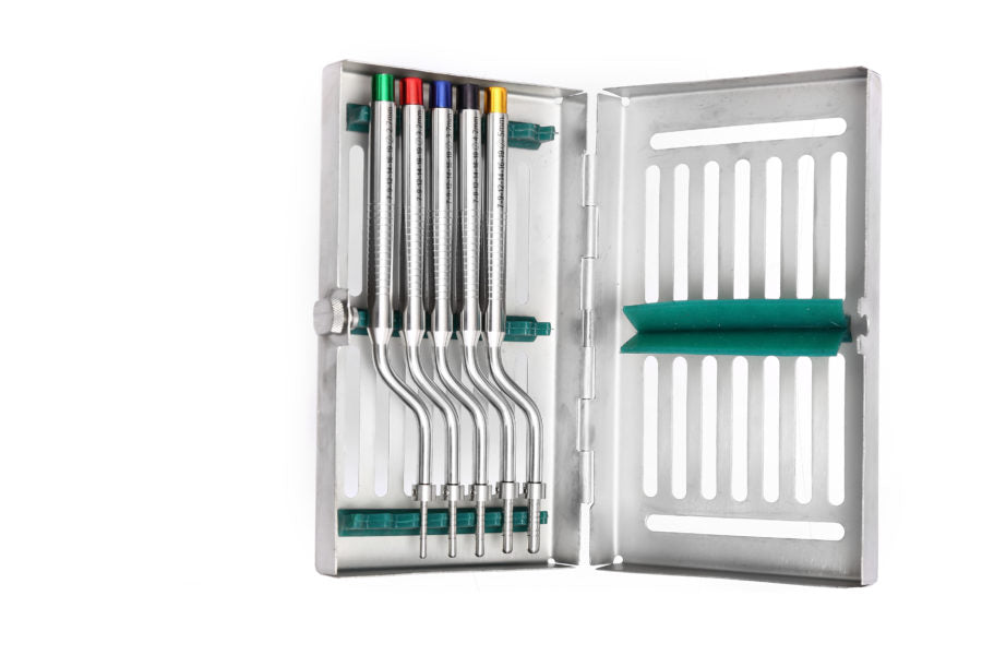 Implant Osteotomes Angulated set of 5 with Casset Round CONVEX - SS WHITE