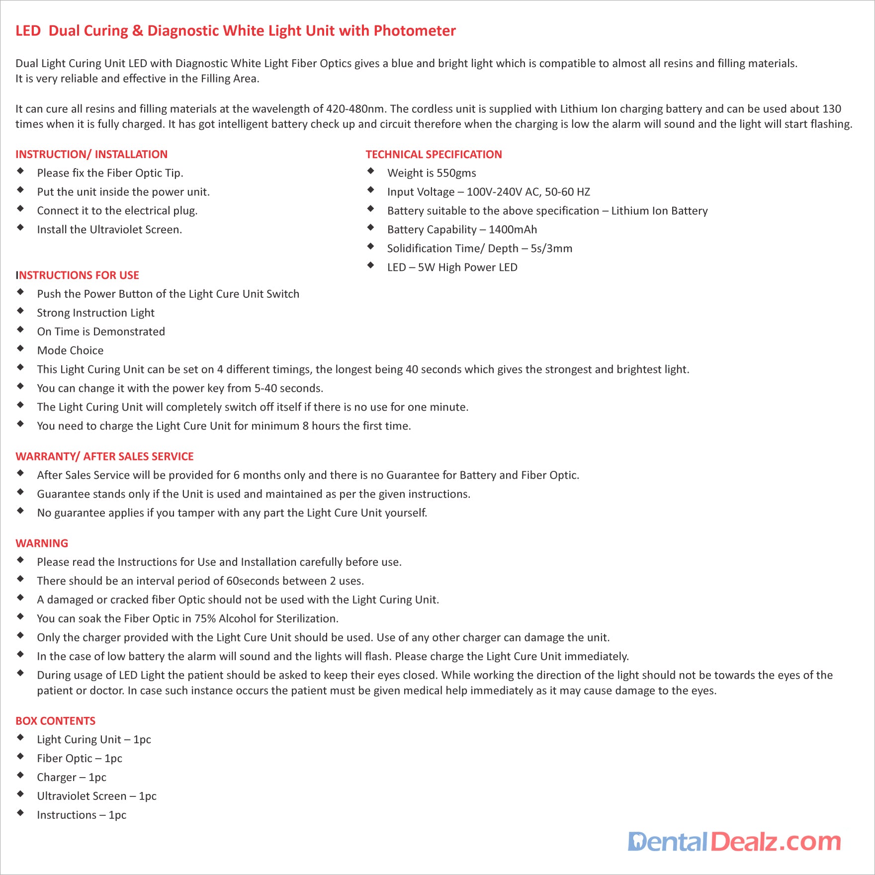 Led Curing Light (Dual) & Diagnostic White Light Unit With Photo Meter "Wireless" SS WHITE