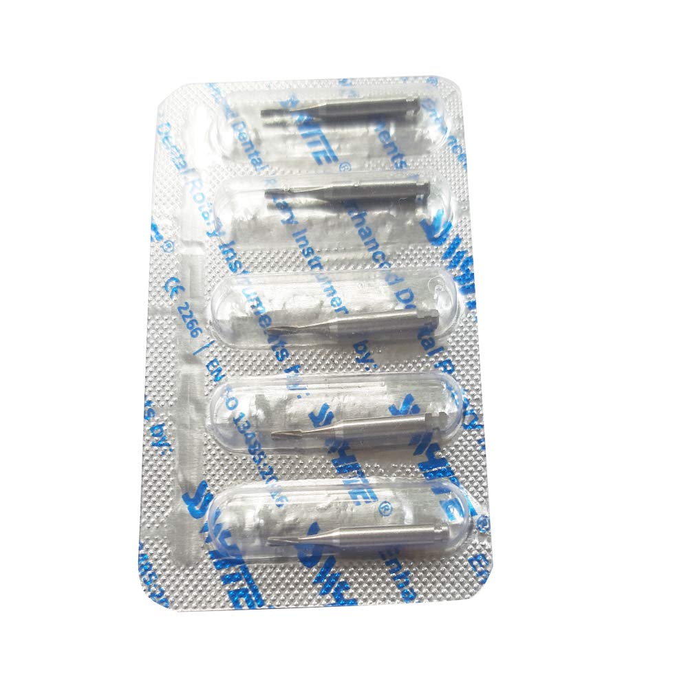 SS WHITE- Carbide Bur Exceeds the International Standard – Gives a fast, smooth vibration free performance, reducing patient discomfort as well as operative time – Less stress on the handpiece and reduces the risk of early chuck failure – This produces a longer lasting, durable bur, which is cost effective and a better value for the money – 100% inspected by infrared – 5 Burs Per Blister Pack Usage Tips – Sterilize burs prior to each use – Burs should be replaced frequently to maintain efficiency and reduce risk – Never force a bur into the turbine and avoid putting pressure on the bur when in use – Observe recommended speeds to avoid excessive heat – Do not keep the bur still to avoid burning of the bur – Always insert the bur fully into the handpiece chuck – Always use sufficient water coolant – Do not use a bur in a worn chuck Maintenance Cleaning – Pre-soak the burs in a disinfection solution that contains a corrosion inhibitor – Use a brush to clean the burs and rinse thoroughly – Dry the burs and store in a clean and moisture-free environment