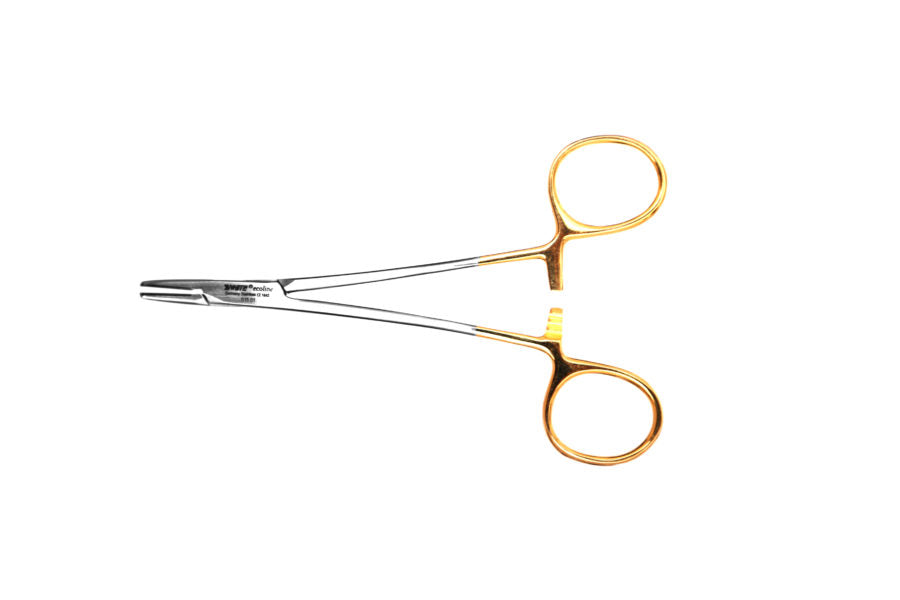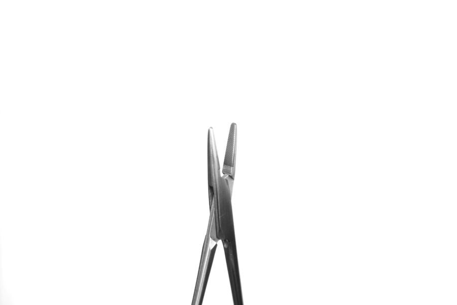 TC Needle Holder is a ratcheted, finger ring instrument available in a wide range of lengths, and used in multiple types of surgical procedures. Due to it's versatility, it is one of the most commonly used surgical tools for both human and animal procdures. Shorter length products may be used in oral, gynecological, or dermatological procedures, as well as with small animals. Larger lengths of this product may be used for deep tissue suturing such as in bariatric procedures, or in large animal procedures. The Mayo-Hegar needle holder is commonly used with larger, heavier suture needles because of it's wide jaws. Tungsten carbide inserts also maximize control and precision.