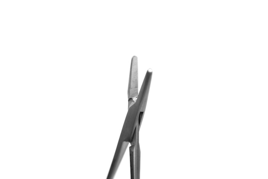 TC Needle Holder is a ratcheted, finger ring instrument available in a wide range of lengths, and used in multiple types of surgical procedures. Due to it's versatility, it is one of the most commonly used surgical tools for both human and animal procdures. Shorter length products may be used in oral, gynecological, or dermatological procedures, as well as with small animals. Larger lengths of this product may be used for deep tissue suturing such as in bariatric procedures, or in large animal procedures. The Mayo-Hegar needle holder is commonly used with larger, heavier suture needles because of it's wide jaws. Tungsten carbide inserts also maximize control and precision.